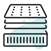 קפיצי פוקט עטופים ונפרדים לתחושת נוחות מירבית. הקפיצים ארוזים זה לצד זה, מוגנים במסגרת ספוג PU כחול בצפיפות גבוהה השומרת על שכבת הקפיצים ומבטיחה את עמידות המזרן ותפקוד הקפיצים למשך שנים רבות.
